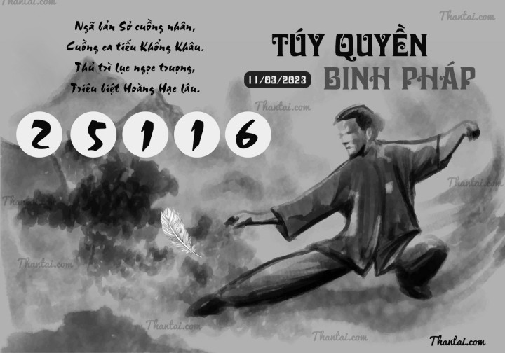 TÚY QUYỀN BINH PHÁP chốt dàn đề xỉu chủ đẹp, bạch thủ lô , song thủ lô dễ ra nhất hôm nay 11/03/2023. Anh em có thể tham khảo để dành chiến thắng cho ngày 11/03/2023.