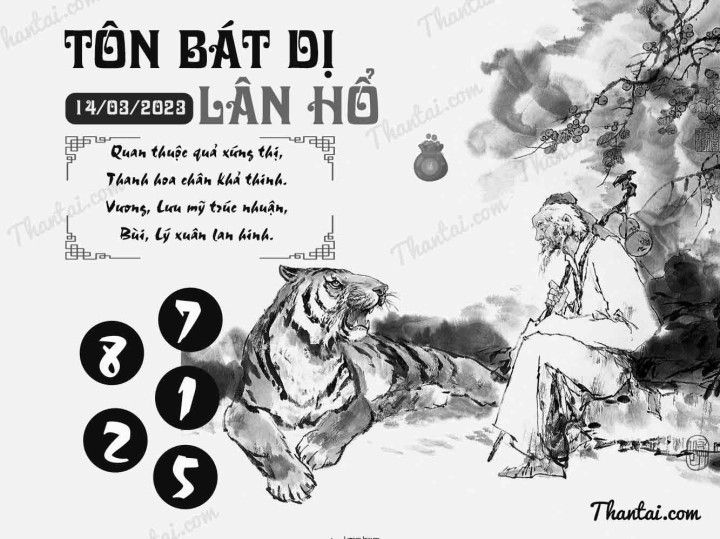 TÔN BÁT DỊ LÂN HỔ dự đoán dàn đề xổ số miền Bắc thứ 3 ngày 14/03/2023, TÔN BÁT DỊ LÂN HỔ soi cầu Ngũ hành tốt xấu hôm nay 14/03/2023 may mắn nhất. Anh em có thể tham khảo để dành chiến thắng cho ngày 14/03/2023.