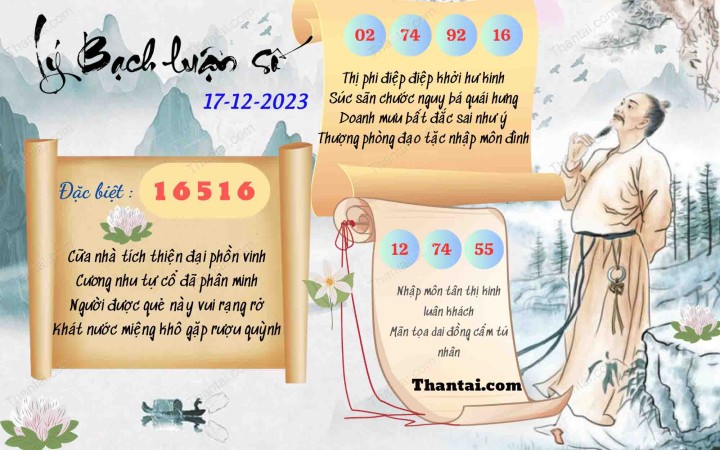 Kho tàng dự đoán Lý Bạch Luận Số soi cầu xổ số miền Bắc chủ nhật ngày 17/12/2023