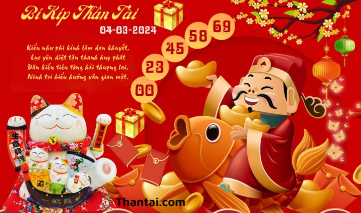 Gieo duyên Bí Kíp Thần Tài dự đoán XSMB thứ 2 ngày 04/03/2024, Bí Kíp Thần Tài chia sẻ số đẹp miền Bắc ngày 04/03/2024 dễ trúng nhất. Anh em có thể tham khảo để dành chiến thắng cho ngày 04/03/2024.