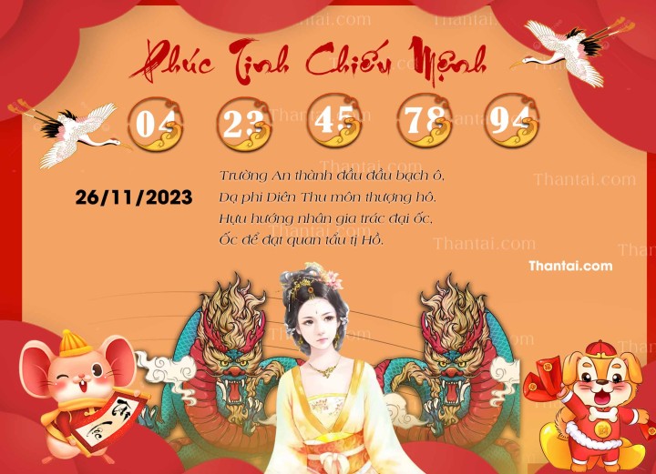 Kho tàng dự đoán Phúc Tinh Chiếu Mệnh soi cầu xổ số miền Bắc chủ nhật ngày 26/11/2023