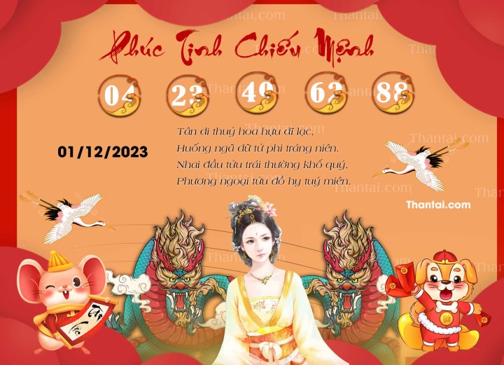 Chốt số Phúc Tinh Chiếu Mệnh dự đoán XSMB thứ 6 ngày 01/12/2023, Phúc Tinh Chiếu Mệnh chia sẻ số đẹp miền Bắc ngày 01/12/2023 dễ trúng nhất. Anh em có thể tham khảo để dành chiến thắng cho ngày 01/12/2023.