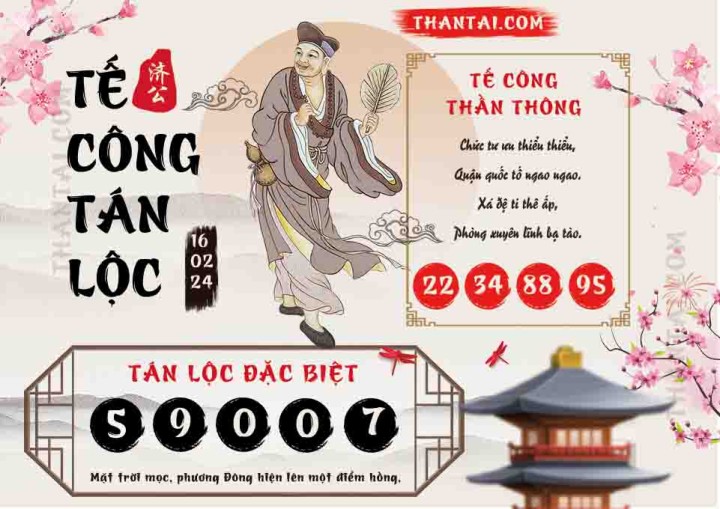 Chốt số Tế Công Tán Lộc dự đoán XSMB thứ 6 ngày 16/02/2024, Tế Công Tán Lộc chia sẻ số đẹp miền Bắc ngày 16/02/2024 dễ trúng nhất. Anh em có thể tham khảo để dành chiến thắng cho ngày 16/02/2024.