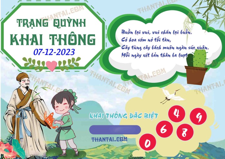 Kho tàng Trạng Quỳnh Khai Thông dự đoán số đẹp đặc biệt XSMB thứ 5 ngày 07/12/2023