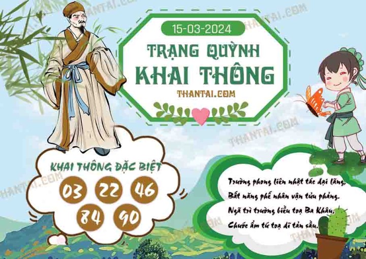 Chốt số Trạng Quỳnh Khai Thông dự đoán XSMB thứ 6 ngày 15/03/2024, Trạng Quỳnh Khai Thông chia sẻ số đẹp miền Bắc ngày 15/03/2024 dễ trúng nhất. Anh em có thể tham khảo để dành chiến thắng cho ngày 15/03/2024.
