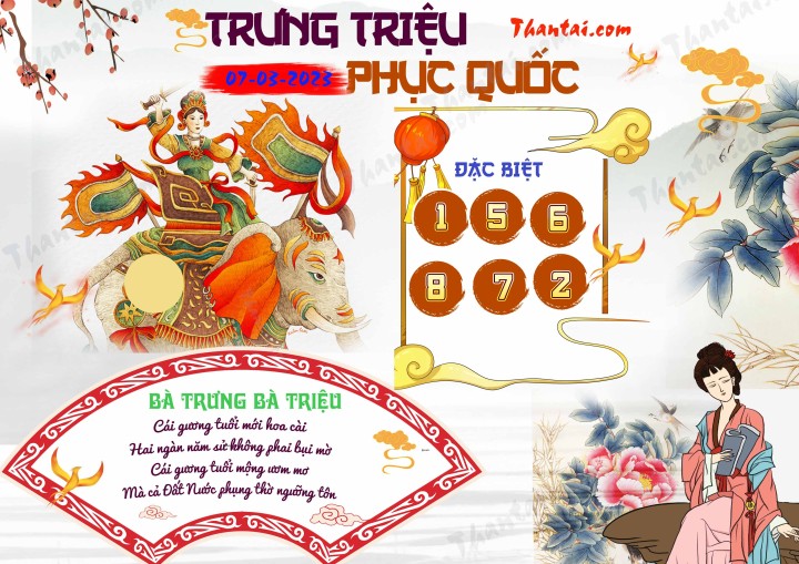 Trưng Triệu Phục Quốc dự đoán dàn đề xổ số miền Bắc thứ 3 ngày 07/03/2023, Trưng Triệu Phục Quốc soi cầu Ngũ hành tốt xấu hôm nay 07/03/2023 may mắn nhất. Anh em có thể tham khảo để dành chiến thắng cho ngày 07/03/2023.