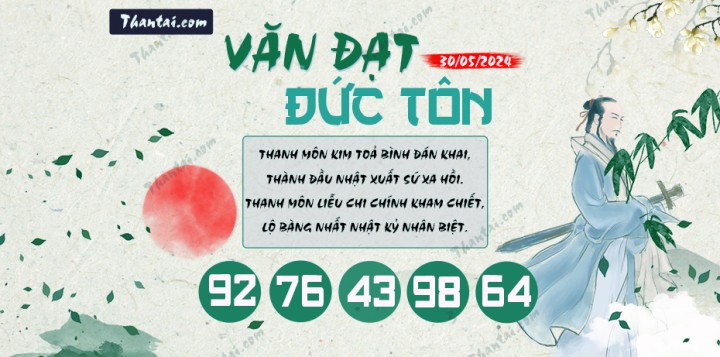 Kho tàng Văn Đạt Đức Tôn dự đoán số đẹp đặc biệt XSMB thứ 5 ngày 30/05/2024