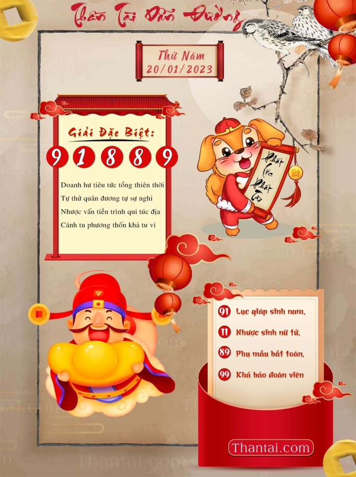 Hãy dành thời gian khám phá Kho tàng dự đoán xổ số tại THẦN TÀI DẪN ĐƯỜNG và chuẩn bị cho mình một hành trình thú vị vào thế giới dự đoán xổ số để giành được chiến thắng lớn vào ngày 20/01/2023.