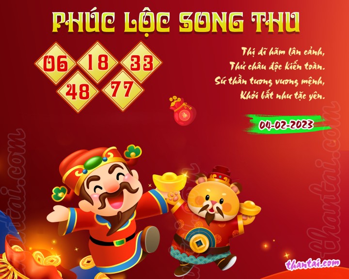 PHÚC LỘC SONG THU chốt dàn đề xỉu chủ đẹp, bạch thủ lô , song thủ lô dễ ra nhất hôm nay 04/02/2023. Anh em có thể tham khảo để dành chiến thắng cho ngày 04/02/2023.