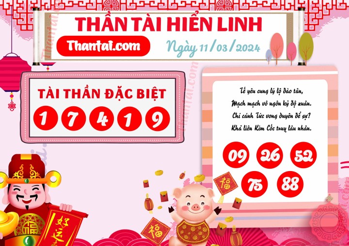 Kho tàng THẦN TÀI HIỂN LINH dự đoán XSMB thứ 2 ngày 11/03/2024