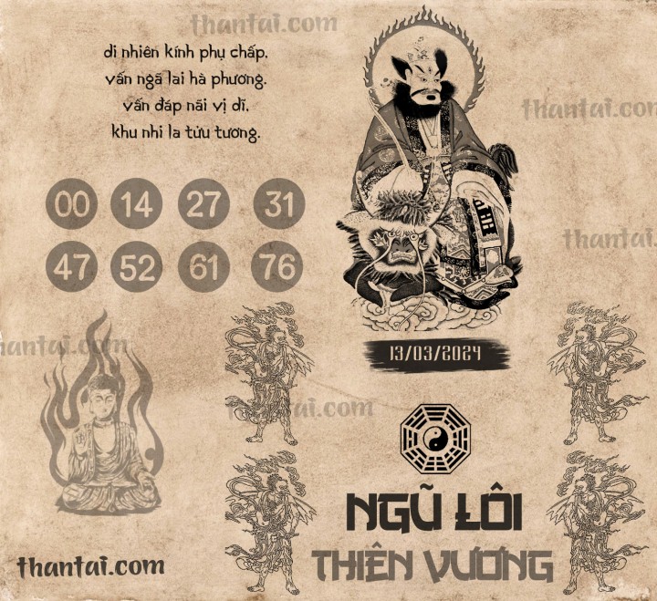 NGŨ LÔI THIÊN VƯƠNG cho số đẹp XSMB thứ 4 ngày 13/03/2024
