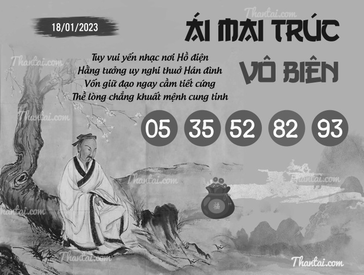 Kho tàng ÁI MAI TRÚC VÔ BIÊN soi số đẹp XSMB thứ 4 ngày 18/01/2023, ÁI MAI TRÚC VÔ BIÊN dự đoán xổ số miền Bắc hôm nay ngày 18/01/2023 dễ trúng nhất. Anh em có thể tham khảo để dành chiến thắng cho ngày 18/01/2023.