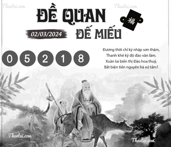 ĐỀ QUAN ĐẾ MIẾU dự đoán bộ đề miền Bắc thứ 7 ngày 02/03/2024 chính xác nhất