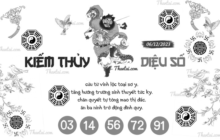 KIẾM THỦY DIỆU SỐ cho số đẹp XSMB thứ 4 ngày 06/12/2023