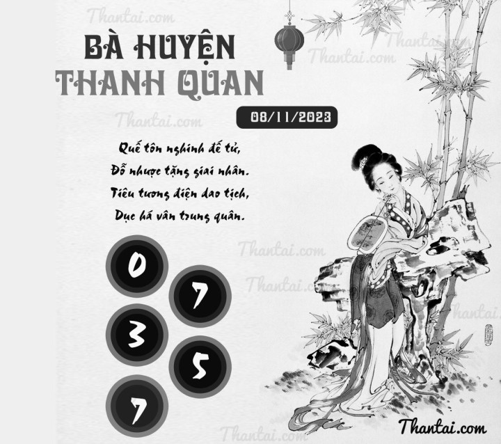 BÀ HUYỆN THANH QUAN cho số đẹp XSMB thứ 4 ngày 08/11/2023