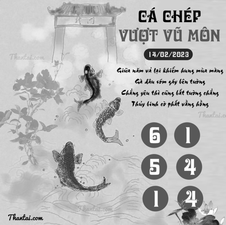 CÁ CHÉP VƯỢT VŨ MÔN dự đoán dàn đề xổ số miền Bắc thứ 3 ngày 14/02/2023, CÁ CHÉP VƯỢT VŨ MÔN soi cầu Ngũ hành tốt xấu hôm nay 14/02/2023 may mắn nhất. Anh em có thể tham khảo để dành chiến thắng cho ngày 14/02/2023.