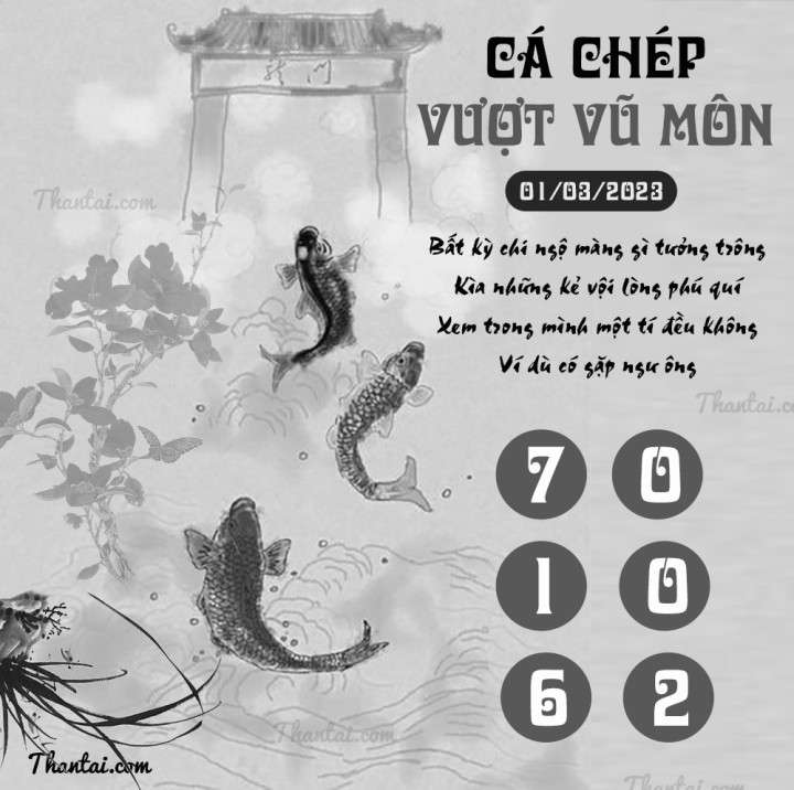 Kho tàng CÁ CHÉP VƯỢT VŨ MÔN soi số đẹp XSMB thứ 4 ngày 01/03/2023, CÁ CHÉP VƯỢT VŨ MÔN dự đoán xổ số miền Bắc hôm nay ngày 01/03/2023 dễ trúng nhất. Anh em có thể tham khảo để dành chiến thắng cho ngày 01/03/2023.