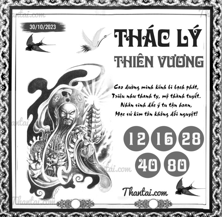 Gieo duyên THÁC LÝ THIÊN VƯƠNG dự đoán XSMB thứ 2 ngày 30/10/2023, THÁC LÝ THIÊN VƯƠNG chia sẻ số đẹp miền Bắc ngày 30/10/2023 dễ trúng nhất. Anh em có thể tham khảo để dành chiến thắng cho ngày 30/10/2023.
