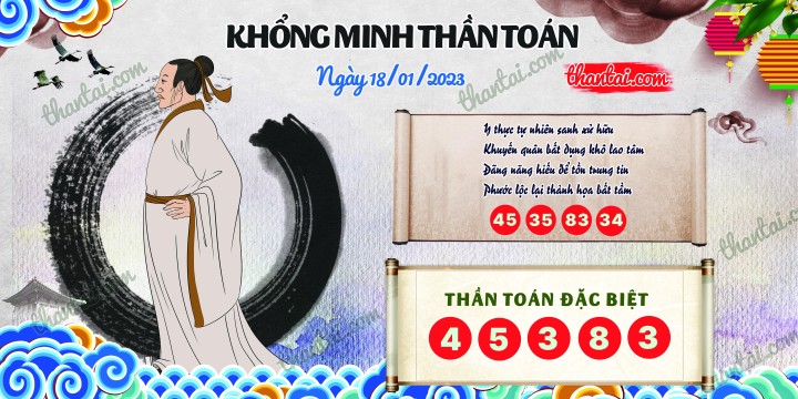 Kho tàng Khổng Minh Thần Toán soi số đẹp XSMB thứ 4 ngày 18/01/2023, Khổng Minh Thần Toán dự đoán xổ số miền Bắc hôm nay ngày 18/01/2023 dễ trúng nhất. Anh em có thể tham khảo để dành chiến thắng cho ngày 18/01/2023.