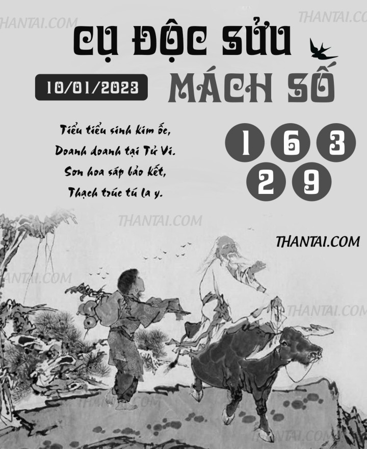 CỤ ĐỘC SỬU MÁCH SỐ dự đoán dàn đề xổ số miền Bắc thứ 3 ngày 10/01/2023, CỤ ĐỘC SỬU MÁCH SỐ soi cầu Ngũ hành tốt xấu hôm nay 10/01/2023 may mắn nhất. Anh em có thể tham khảo để dành chiến thắng cho ngày 10/01/2023.