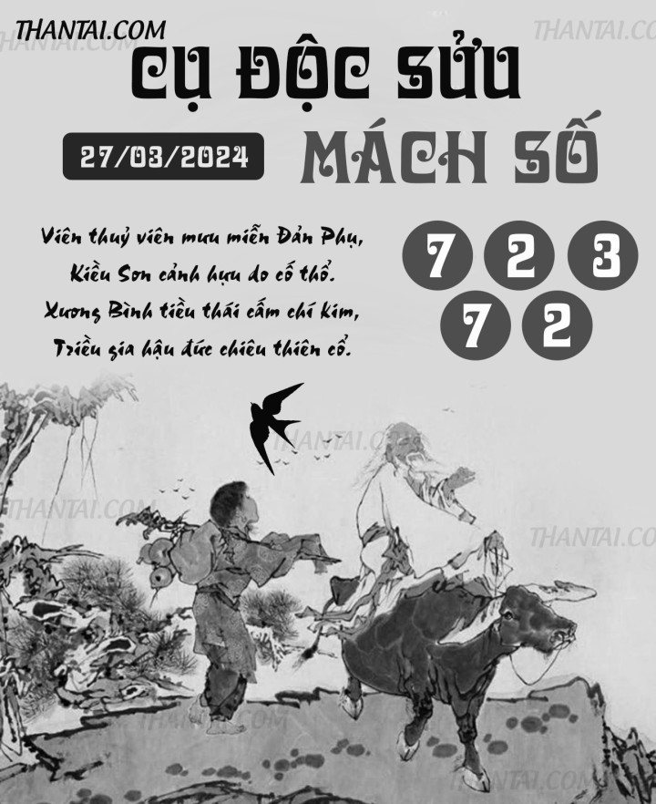 CỤ ĐỘC SỬU MÁCH SỐ cho số đẹp XSMB thứ 4 ngày 27/03/2024