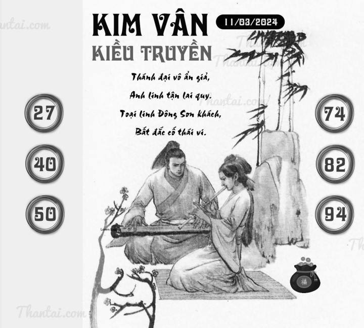 KIM VÂN KIỀU TRUYỀN dự đoán dàn đề xổ số miền Bắc thứ 3 ngày 12/03/2024, KIM VÂN KIỀU TRUYỀN soi cầu Ngũ hành tốt xấu hôm nay 12/03/2024 may mắn nhất. Anh em có thể tham khảo để dành chiến thắng cho ngày 12/03/2024.