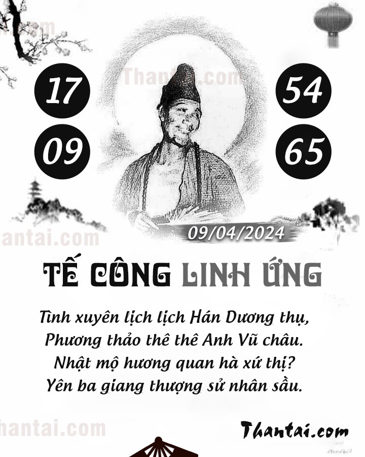 TẾ CÔNG LINH ỨNG dự đoán dàn đề xổ số miền Bắc thứ 3 ngày 09/04/2024, TẾ CÔNG LINH ỨNG soi cầu Ngũ hành tốt xấu hôm nay 09/04/2024 may mắn nhất. Anh em có thể tham khảo để dành chiến thắng cho ngày 09/04/2024.